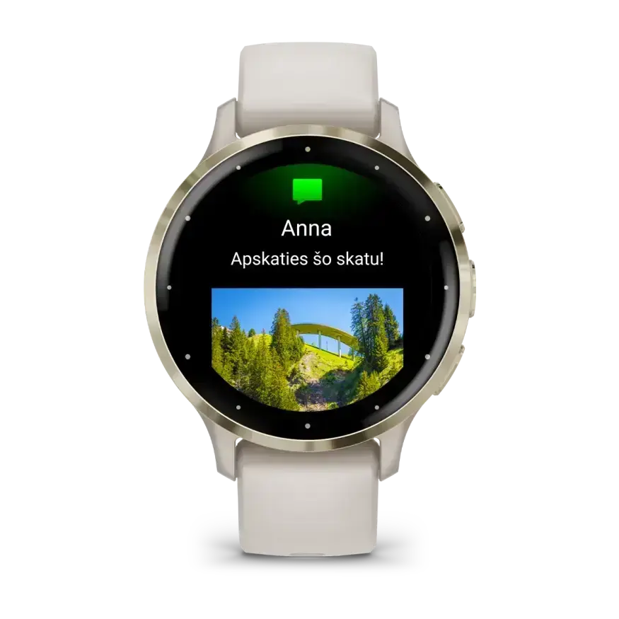 Venu 3S ir īpaši veidots ar modernām veselības un fitnesa funkcijām un iespēju veikt un saņemt zvanus un sūtīt ziņojumus1, tā padarot to par kaut ko vairāk par viedpulksteni — tas ir jūsu personīgais treneris, kas atrodas tepat uz plaukstas locītavas un atbalsta katru jūsu mērķi.